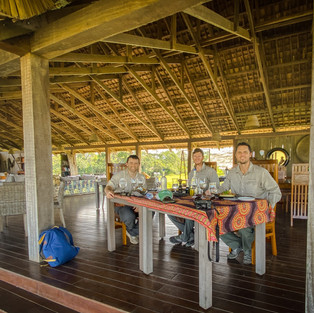 Off to CAR! We took our plane to the very northern tip of Republic of Congo where we landed on a mud airstrip. And then we were on our way to CAR by taking a boat. The boat ride was incredible and one of the more surreal experiences I’ve had throughout my life. The twists and turns through the tranquil waters were electric. In true Africa fashion we stopped at 5 different customs points at random villages that had 3 shacks and often delivered what seemed to be bags of booze to appease the customs officials. One of my favorite random encounters was our driver asking if picking up a hitchhiker to take upriver was ok with us, and we said sure. My guess is he hadn’t seen many white people before, and he took dozens of pictures with us on the boat and he seemed so grateful we allowed him on to hitchhike. We finally made it to our destination and the lodge was a trip. We were there with a couple of researchers and construction workers with dinners more resembling “family dinners.” The owner of the camp was something else and looks like a guy who has been in CAR for 30 years (the bearded fellow Rob below). Rob managed the camp, his wife managed an animal research clinic there, and his son worked as our guide. They were amazing hosts and really made the experience. Hearing his stories on when the civil war broke out a couple years was enthralling culminating with him chasing off several teenagers with machine guns off his property!