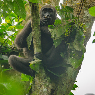 Our first lodge was fun to get to with a 2-hour ride in a jungle Land Rover. The food was spectacular and not exactly “roughing it.” Our first real adventure was tracking some gorillas. We came down here to find some silverbacks and ventured off into the jungle just outside of the camp. Our tracker was incredible to watch as he used a machete to go down into the jungle and went off scent. He would investigate the footprints and see where the trail led. We also went off sound during our 1.5-hour hike. We finally encountered the gorillas and it was quite the sight. The gorillas were a little far away from us, but my friend’s camera caught some great shots. We never felt threatened and were surprised how comfortable the gorillas were around us. Apparently, they are pretty good at judging whether onlookers are tourists or poachers, one give away is our medical masks. Humans can pass along deadly diseases so once we encountered the gorillas we put on masks. Majestic creatures and we found a silverback!